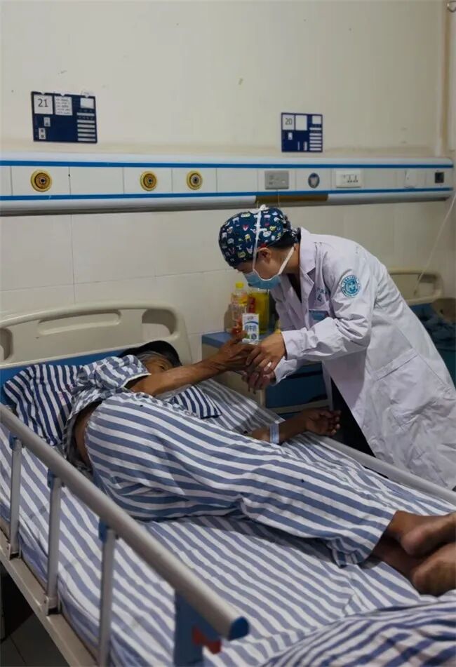 93岁手部创伤的老奶奶是这项技术的首批受益者。这位高龄老人因手部严重创伤需进行清创植皮手术,考虑到全身麻醉风险极高,李欢采用超声精准麻醉技术实施区域神经阻滞麻醉。在超声实时引导下,麻醉药物精确注射到目标神经周围,既保证手术区域无痛,又最大程度降低了对患者全身的影响。手术中患者生命体征平稳,术后恢复良好,家属对李欢的医术赞不绝口。