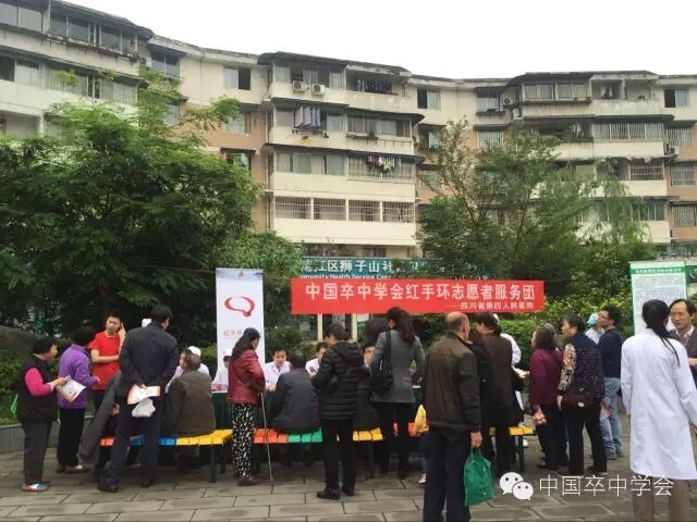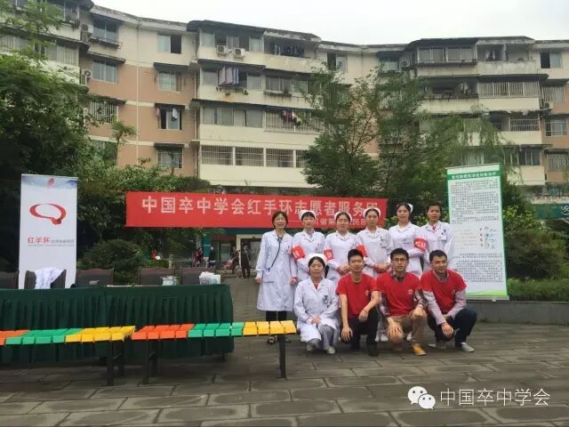 2016年4月22日,四川省第四人民医院红手环志愿者服务团的10名医护人员在神经内科刘坤梅主任的带领下,以中国卒中学会红手环志愿者服务团体活动为载体,来到了四川省成都市锦江区狮子山社区卫生服务中心,开展“脑卒中的早期预防、早期治疗”宣传、义诊活动,传播预防和治疗脑卒中的健康知识。